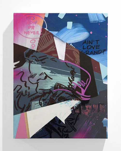 Oil, Enamel, Spray Paint on Canvas.
